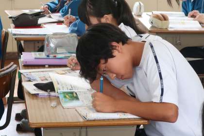 テストを来週に控え、一生懸命勉強していました。仲間と一緒に行うことで、勉強もはかどっているようでした。