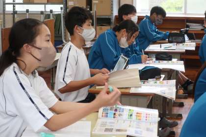 「構成の効果を理解しよう」をテーマに、シンメトリー、グラデーション、リピテーション、コントラストなど、様々なレイアウトのパターンを学んでいました。