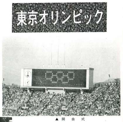 なんといっても、この年の最大の話題は、アジアでは初めての『第18回東京オリンピック大会』でした。参加94か国6,000人。わが選手団の成果は、金メダル16個、銀メダル5個、銅メダル8個で、アメリカ、ソ連についで第3位の栄誉を確保しました。