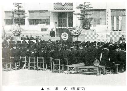 ・上…卒業式(運動場にて)