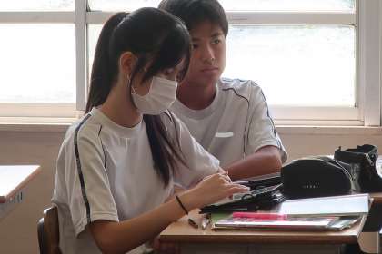 2年4組の社会・地理分野の授業の様子です。