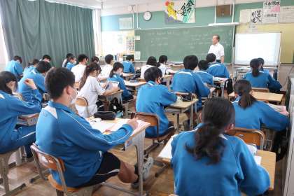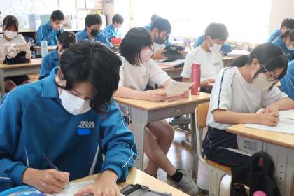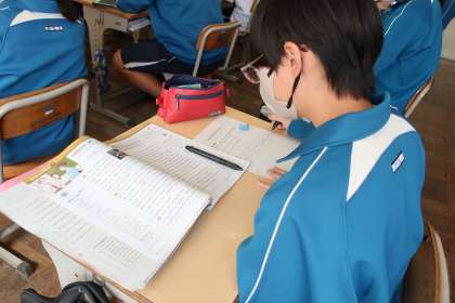 教科書に掲載されている英語の長文の読解です。同時に、自分の考えを英語で書き出す活動にも取り組んでいました。