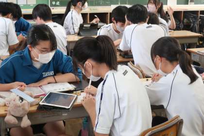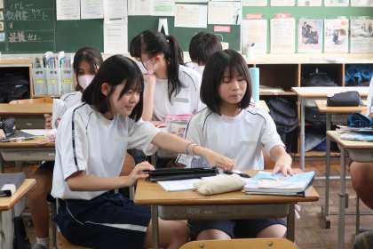 テストを目前、最後の追い込みです。テキストやプリントなどに取り組む生徒、仲間に教えて知識を確認する生徒など様々です。