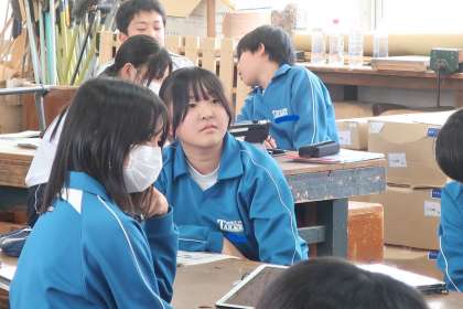 「ミライの高岡の食糧を支えるには?」をテーマに、日本の食糧問題を参考にしながら、お互いにアイデアを出し合っていました。