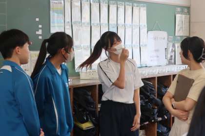 「アドジャン」に取り組んだ今回のポイントは「うなずいて聴く」で、夏休み中の思い出も含め、様々なテーマでお互いの話を聴きました。