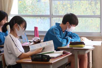ALTと発音練習をしたあと、テストに向けた最後の追い込みをしていました。