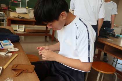 なまえワッペンの制作です。仲間や先生のサポートを得ながら、一生懸命活動に取り組んでいた姿が印象的でした。