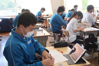 明日からの定期テストに備え、直前の追い込みです。普段のにぎやかな雰囲気からは想像できないほど、集中して勉強に取り組んでいました。