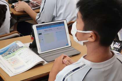 「韓国の特徴を考えよう」をテーマに学習が進められていました。