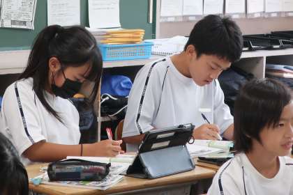 9/9 1-4 韓国の特徴 3 公開日 2025/09/09 更新日 2025/09/09 各学年から 1年4組の社会・地理分野の授業の様子です。 「韓国の特徴を考えよう」をテーマに学習が進められていました。