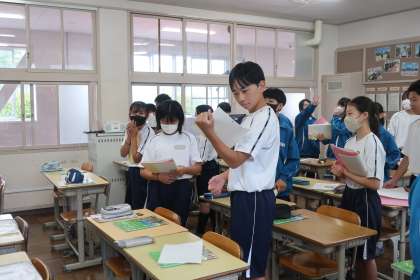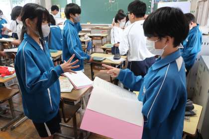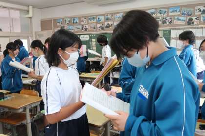 ALTも参加してのアクティビティ活動です。相手を代えながら何度も会話文の練習に取り組んでいました。