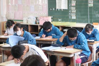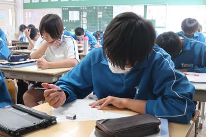 テスト本番と同じ意識で計算のプリントに取り組んでいました。弱点や理解が不十分なところをしっかりと確認し、本番に臨んでほしいと思います。