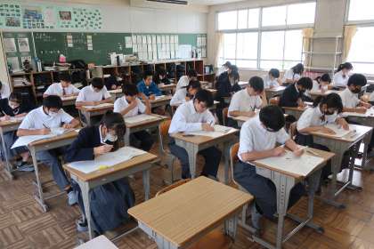 9/10 2-1 第2回定期テスト(1日目) 公開日 2025/09/10 更新日 2025/09/10 各学年から 本日から3日間の日程で始まった第2回定期テスト。 写真は、2年1組の様子です。 夏休みから続けてきた学習の成果が、十分に発揮されることを期待したいと思います。