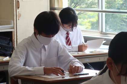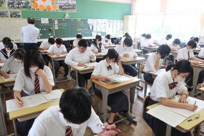 9/10 3-5 第2回定期テスト(1日目) 公開日 2025/09/10 更新日 2025/09/10 各学年から 本日から3日間の日程で始まった第2回定期テスト。 写真は、3年5組の様子です。 来春の進路実現に向け、悔いの残らない取組をしてほしいと思います。