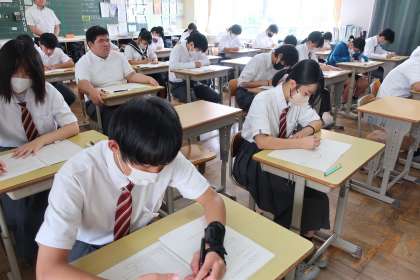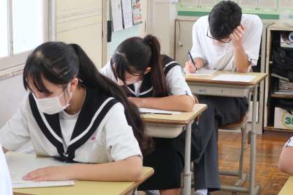 夏休み中の上級学校の体験入学などで、『受験』の言葉を実感していると思いますが、約1か月後、今度は『学習診断テスト(第2回)』が控えています。今回のテストの経験を生かし、さらに高みを目指して努力を続けてほしいと思います。