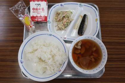 10/6 今日の給食 公開日 2025/10/06 更新日 2025/10/06 特別活動 今日は「月見献立」の日です。 献立は ————— いものこ汁、ごぼうサラダ、いわしのしょうが煮、月見だんご、ごはん、牛乳 でした。 *エネルギー:890kcal たんぱく質:27.7g