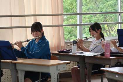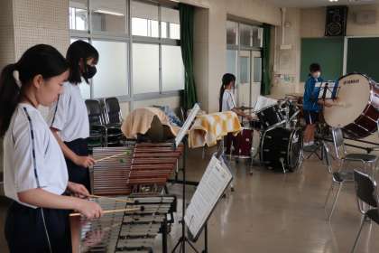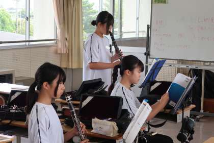 楽器ごとに先輩が後輩たちの指導を行いながら練習に励んでいました。