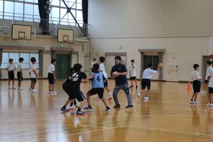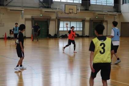 ゲーム形式のメニューを中心に活動していました。ビブスを着て、コートでプレーすることを喜んでいた1年生の笑顔が印象的でした。