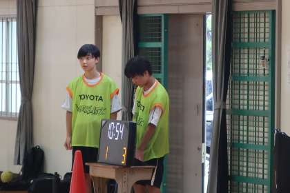 ゲーム形式のメニューを中心に活動していました。ビブスを着て、コートでプレーすることを喜んでいた1年生の笑顔が印象的でした。