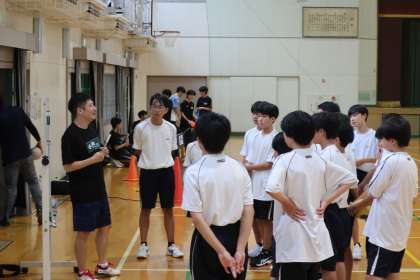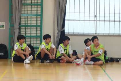 ゲーム形式のメニューを中心に活動していました。ビブスを着て、コートでプレーすることを喜んでいた1年生の笑顔が印象的でした。