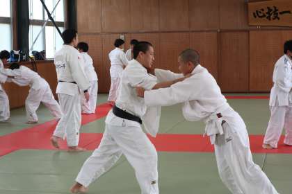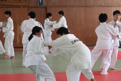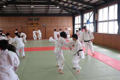 OBの高校生も一緒に稽古に励んでいました。新しい柔道着の1年生もやる気満々でした。
