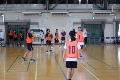 市内のクラブチームと市外の中学校に来ていただいての練習試合です。少しずるゲームの感覚をつかんでいく選手たち。1年生も試合に出られるとあって、やる気いっぱいで取り組んでいました。