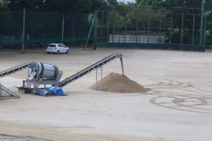 削り取った砂を再活用していくための作業に入っていました。