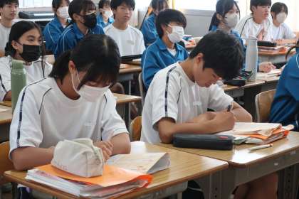 9/17 2-3 ことばのきまり 3 公開日 2025/09/17 更新日 2025/09/17 各学年から 2年3組の国語の授業の様子です。 ことばのきまりの学習で、用言の活用について学んでいました。