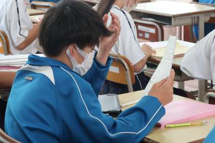 定期テストを終え、今度は会話中心の活動に向けての確認です。しっかりと身につくまで繰り返し活動を続けていきます。