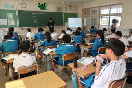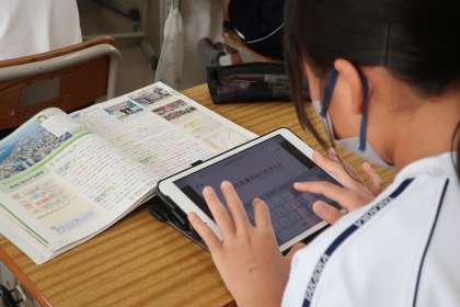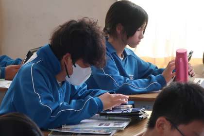 1年5組の社会・地理分野の授業の様子です。