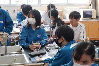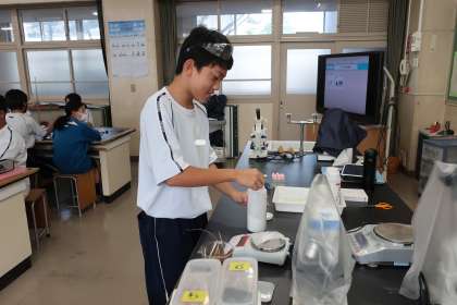 塩化アンモニウムと水酸化ナトリウムを使って、アンモニアを発生させる実験に取り組んでいました。