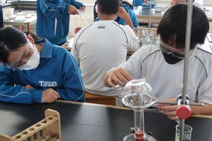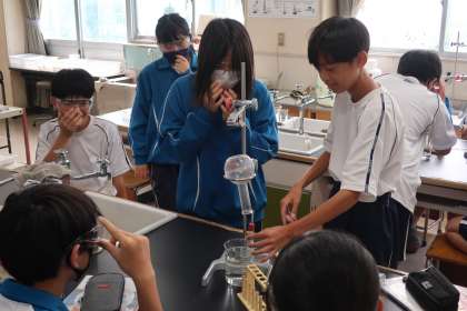 塩化アンモニウムと水酸化ナトリウムを使って、アンモニアを発生させる実験に取り組んでいました。