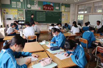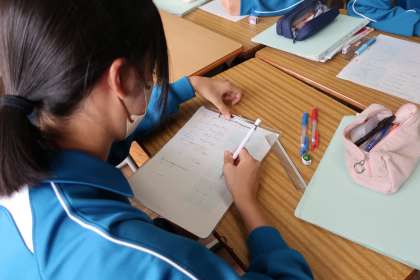 傾き・切片の意味を確認し、グラフのかき方を学んでいました。また難解な問題にも挑戦していました。