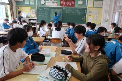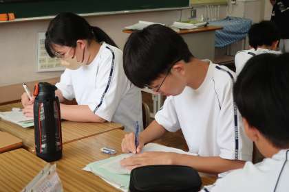 9/18 2-3 傾きと切片 3 公開日 2025/09/18 更新日 2025/09/18 各学年から 2年3組の数学の授業の様子です。 傾き・切片の意味を確認し、グラフのかき方を学んでいました。また難解な問題にも挑戦していました。