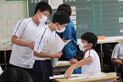9/18 3-5 再チャレンジ 2 公開日 2025/09/18 更新日 2025/09/18 各学年から 3年5組の国語の授業の様子です。 定期テストが返却され、理解が不十分だった問題に再チャレンジしていました。解き方をしっかり身につけようと、教科担任や仲間に確認していました。