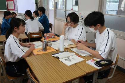 大人になれなかった弟たちに…」の学習で、「心の動き(言葉を通して人の思いに寄り添う)を考えよう」をテーマに、学習の総まとめに取り組んでいました。