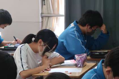 運動とエネルギーの分野で「速さ」の問題に挑戦していました。「小学校でも経験した問題」というキーワードに、がぜんやる気に火がついていたようでした。