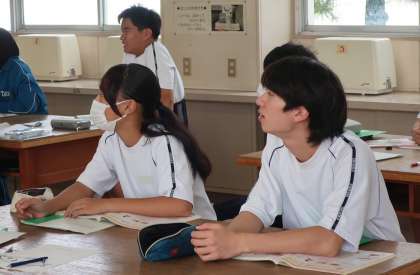 「魚を食べると頭がよくなるってホント?」をテーマに学習が進められていました。その後、次回取り組む生魚のさばき方について、模型を使って予習をしていました。