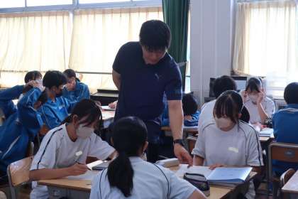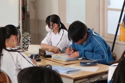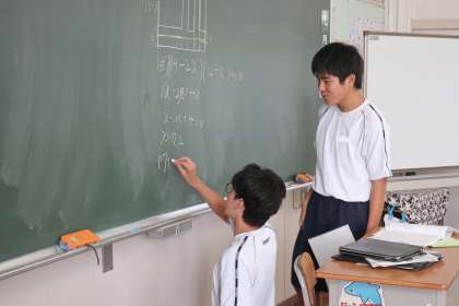 二次方程式の学習で、図に表された状況を読み取り、式を組み立てていきます。計算の練習からレベルがまた一つ上がりました。