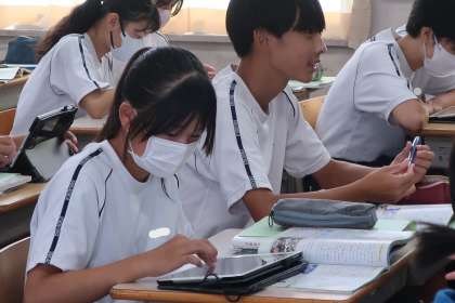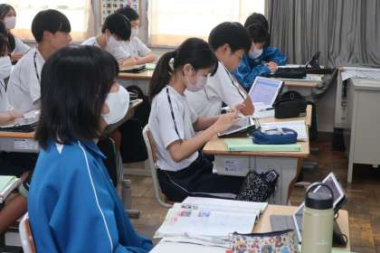 2年4組の社会・地理分野の授業の様子です。