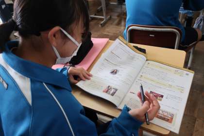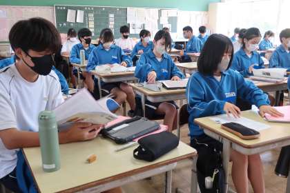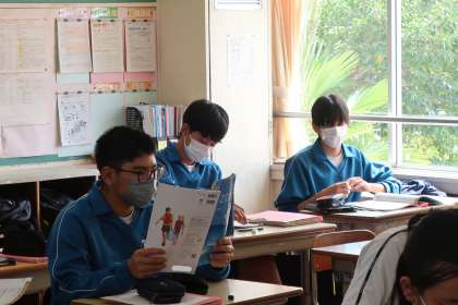 英語で書かれた説明文を読み、その内容についてのいくつかの質問に英語で答えていました。