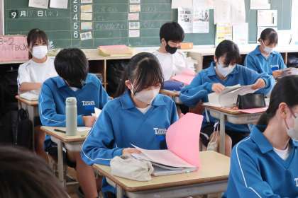 英語で書かれた説明文を読み、その内容についてのいくつかの質問に英語で答えていました。