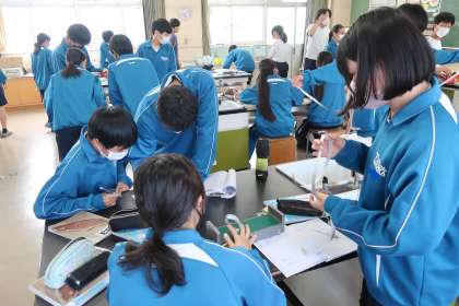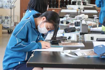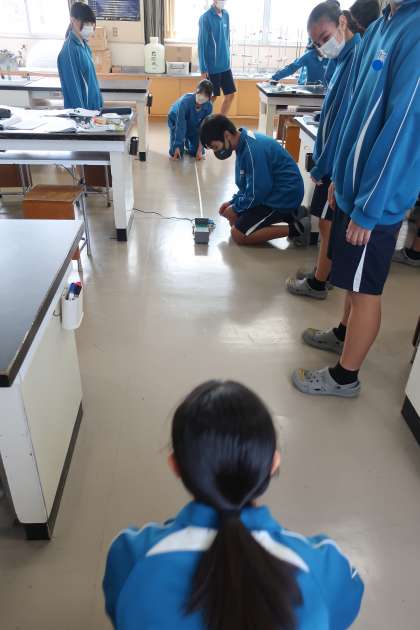 「運動とエネルギー」の単元で、水平面上を力学台車が移動するときの様子を調べる実験に取り組んでいました。