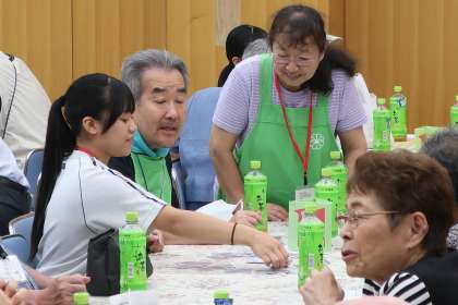 ジュニアクラブより17名がボランティアスタッフとして参加しました。高齢者の方々との楽しいお話、ゲームなどを行ったほか、会場への誘導、昼食の配布なども積極的に行っていました。