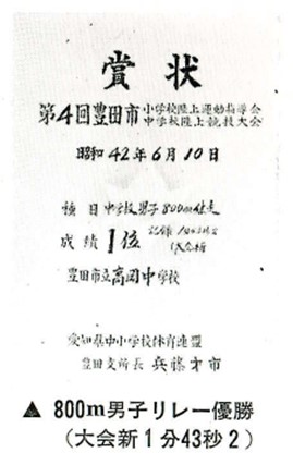 ・中…豊田市中学校陸上競技大会・男子800mリレー優勝