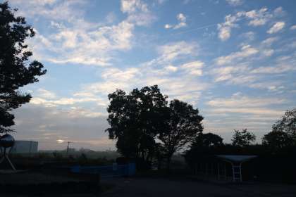 昨夜まで降っていた雨の影響で、今朝は遠くの景色にもやがかかって見えます。しかし、上空には青空が見えます。天気予報によると、日中は30度を超える気温になるようです。再び暑さがやってきます。