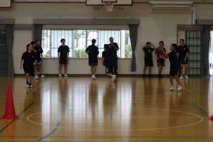 翌日の大会に備え、オフェンスやディフェンスの重要な事柄を確認しながら活動に取り組んでいました。1回戦突破に向け、意気込みが練習に現れていました。