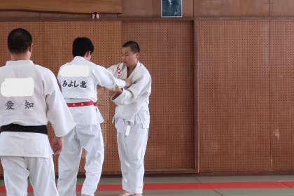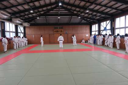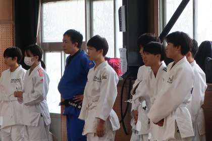 みよし北中学校柔道部の皆さんに来校していただき、合同稽古が行われていました。途中、試合形式での稽古もあり、全員が本気で今の力を出し切っていました。