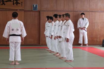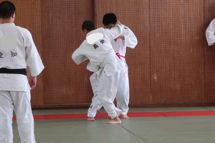 みよし北中学校柔道部の皆さんに来校していただき、合同稽古が行われていました。途中、試合形式での稽古もあり、全員が本気で今の力を出し切っていました。
