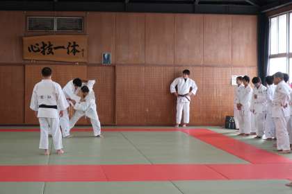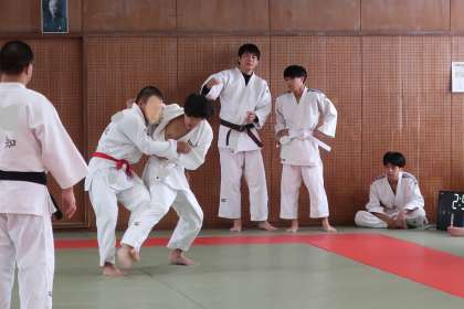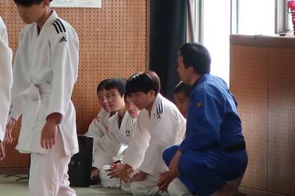 みよし北中学校柔道部の皆さんに来校していただき、合同稽古が行われていました。途中、試合形式での稽古もあり、全員が本気で今の力を出し切っていました。